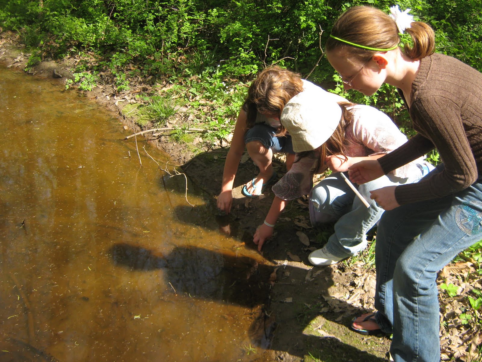 full of new life. The girls tried scooping up the tadpoles to get a feel of them.